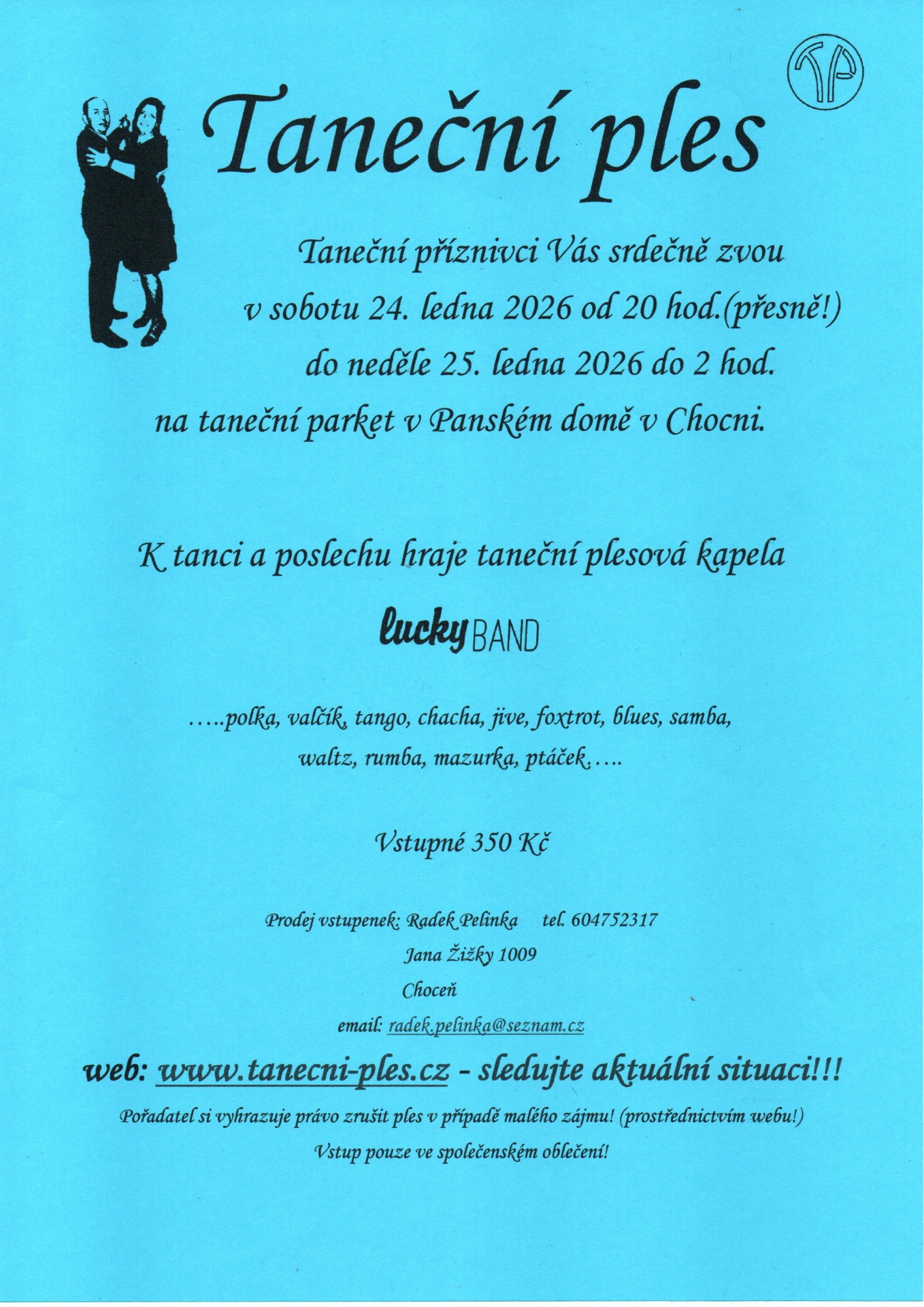Další ples se bude konat 24.1.2026. Lístky již v prodeji.